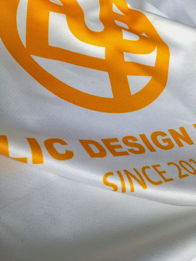 カラープレスプリントとは、カラーで印刷したシートをボディに転写プリントする方法です。小ロットで色数の多い物に最適です。
